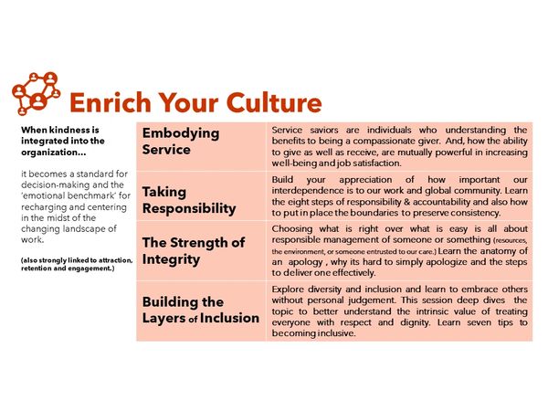 This micro segment explores the benefits for the givers and receivers of kind acts, showing that both are mutually benefited by increased well-being and more life and job satisfaction. Learn the four ways that service can be expressed through time, essence, talent and money.